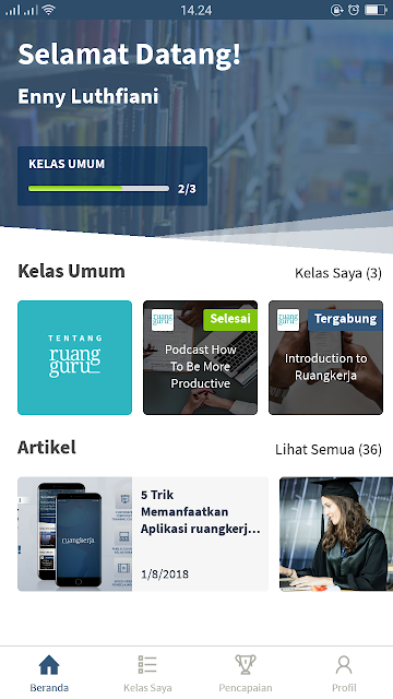 Lagi-lagi aplikasi ini jawaban bagi kita yang haus akan ilmu tapi terbatas waktu, lokasi, dan biaya. Kapan lagi kita bisa dapat materi-materi untuk meningkatkan kemampuan diri secara cuma-cuma alias GRATIS. Modal kuota sih, tapi nggak sebandinglah kalau harus jauh-jauh ke lembaga kursus.